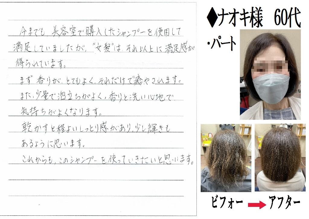 ※YouTubeの使用者様の声、女髪シャンプー&トリートメントの